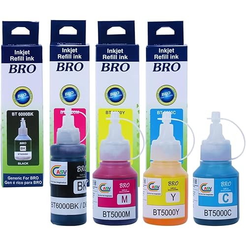 ASV Genuine Refill Ink: Compatible with Brother printers like DCP-T710W, T520W, T820DW, T220, T920DW, T420W, T510W, T310, T500W, T910DW, T300, T700W, and T820DW. ASV Tri-Colour Combo Pack: Includes Black, Magenta, Yellow, and Cyan ink bottles for all… read more