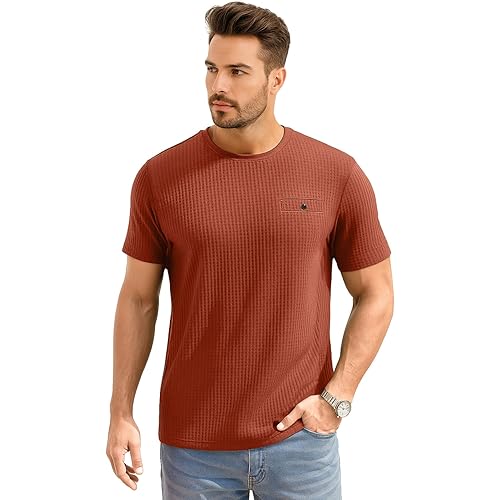 AWG ALL WEATHER GEAR Men Solid Waffle Crew Neck Tshirt | Waffle Knit T-Shirt | Men’s T-Shirt | Tees for Man | Textured Half Sleeve T-Shirt’s | Tshirt for Men Stylish