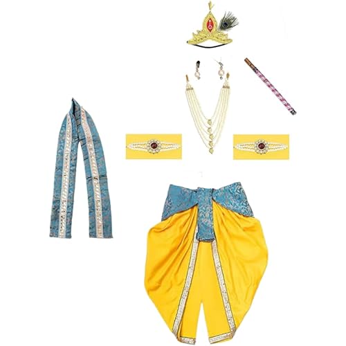 baby & fashion Krishna Costume Set with Crown, Dupatta, Jewellery and Accessories, Yellow and Pink