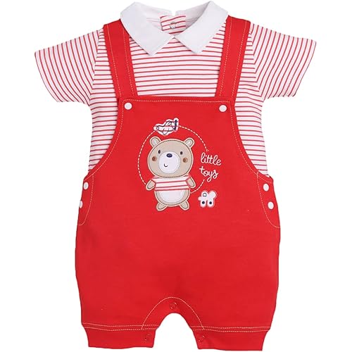MATERIAL: Baby boy dungaree are made of cotton blend, ultra soft, skin-friendly to wear. DESIGN: Newborn baby neutral clothes, baby boy dungaree, uses contrast color, round neck, short sleeve, bottom snap closure for easy diaper changing Button closu… read more