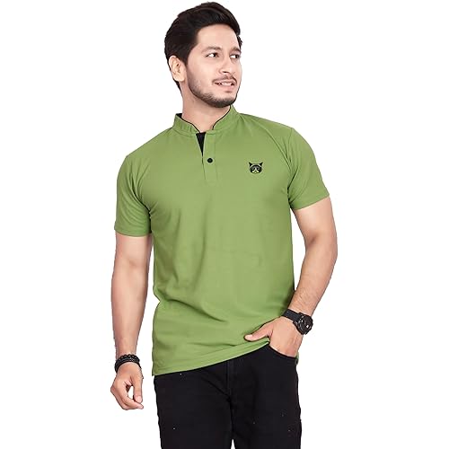 BAGHADBILLO Regular Fit Mandarin Collar T-Shirt Tee for Men & Boys