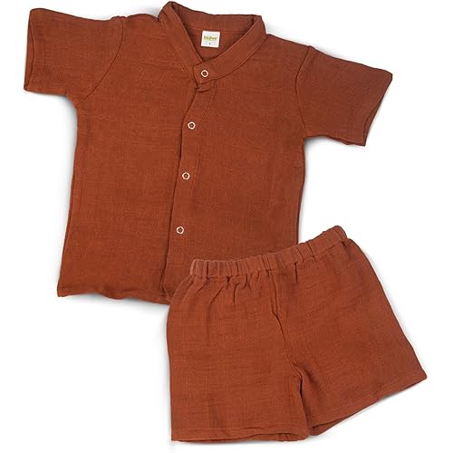 91 reviews for BAYBEE New Born Baby Clothes Muslin Cotton Dress for Kids | Summer Clothing Sets for Baby with Chinese Collar & Press Button | Shirt & Shorts Set | Baby Boy&Girl (Dried Saffron, 12-18 Months (XL))