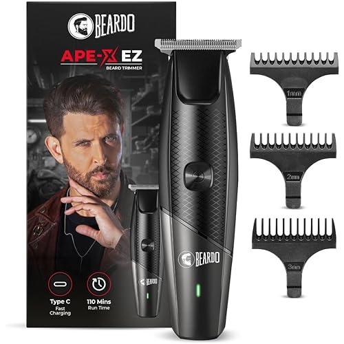 - DURABLE T-BLADES- The Beardo Ape-X EZ Beard Trimmer features nick-proof stainless-steel T-blades that are self-sharpening and built to last. These durable blades ensure precise trimming, making it the perfect trimmer for men, especially beginners looking for a reliable trimmer machine for grooming.