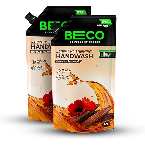 44585 reviews for Beco Moisturising Liquid Handwash-Mahogany Teakwood | Pack of 2 | 675 ml | 8-hr moisture lock | Natural, Paraben free, Chemical Free | Kills 99.99% germs, Safe for all Skin types