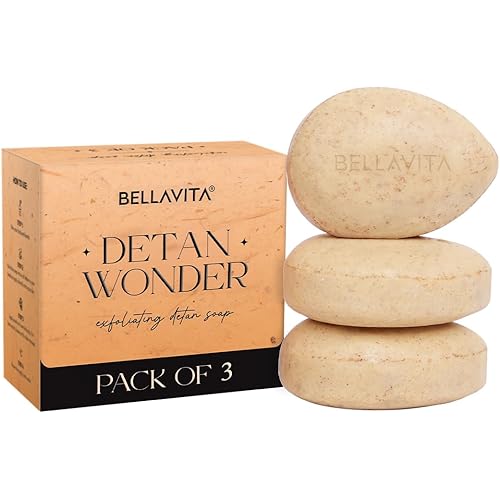37518 reviews for Bellavita De-Tan Wonder Soap | Pack of 3 | Exfoliating Face & Body Soap for Tan Removal | Enriched with Kojic Acid, Jojoba Oil & Alpha Arbutin | Paraben & Mineral Oil Free, 100g