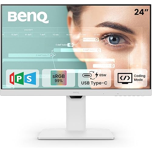 BenQ GW2486TC 24″ IPS 100Hz Full HD Coding Monitor |USB-C(65W PD)| Daisy Chain| 99% sRGB| Coding Mode| Height Adjust|HDMI| DP| USB Hub| 2Wx2 Speakers| Eye Care| Noise Cancelling Microphone (White)