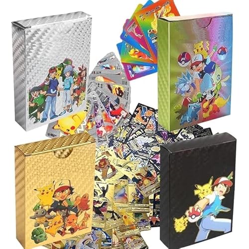 BEST DEALS Poke mon Cards for Kids, Real V Max GX Special Addition High HP Trading Cards, 25 Pcs Golden + 25 Pcs Rainbow +25 Pcs Black +25 Pcs Silver = (Total 100 Poke MON Cards)