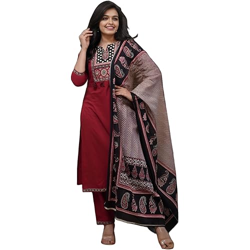 3053 reviews for BHARVITA Women’s Cotton Handwork and Printed Straight Kurta with Pant And Dupatta Sets