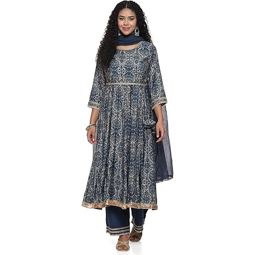 BIBA Womens Women Blue Poly Viscose Anarkali Kurta Palazzo Suit Set