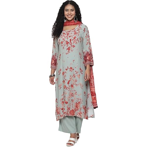 5 reviews for BIBA Womens Women Sage Green Cotton Straight Kurta Palazzo Suit Set