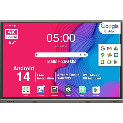 BIG VUE 65 Inches Android 14 Smart Interactive Digital Board/Flat Panel, 8 GB RAM 256 GB ROM, Multitouch Screen Display for Teaching, School, College, Institute, Classroom and Office Use