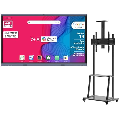 Big VUE Pro 65 Inch Android 14 Interactive Flat Panel Digital Board with Stand, 8 GB RAM 256 GB ROM, Ai-Copilot, 48MP Camera with Microphone, Multitouch Screen Display for Teaching & Office Use
