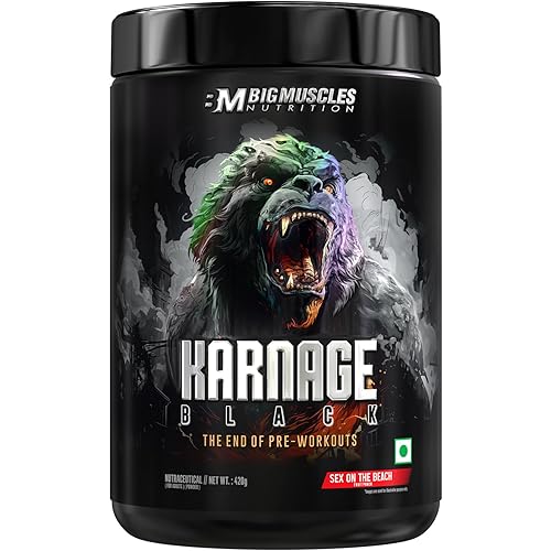 16 reviews for Bigmuscles Nutrition Karnage Black Preworkout [Sex On The Beach, 420g] | Massive Pump | Laser Focus | Explosive Energy | Gorilla Power | No Itching | With Nitrosigine
