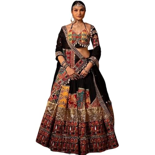 - This Black Navratri Lehenga Chaniya Choli is designed to offer both comfort and elegance, featuring intricate mirror work and a flowing 4-meter flair.