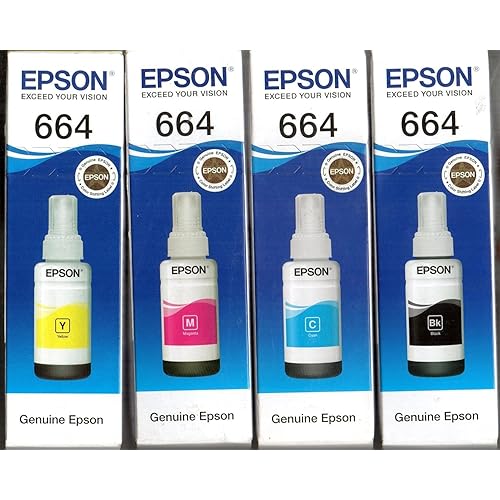 Black,Cyan,Megenta,Yellow Set of Inks 664 70ML for use EPSON L100,L110,L130,L210, L220,L300, L310, L350, L355,L380,L405,L486,L550,L555,L565,L1300