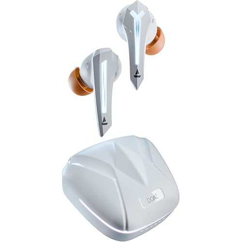 boAt Immortal 111 in Ear TWS Earbuds with up to 40 Hours of Playtime, 40 ms Super-Low Latency Beast Mode, RGB LEDs, Quad Mics with ENx Tech, ASAP Charge, IWP Tech, IPX4, BTv5.3(White Sabre)