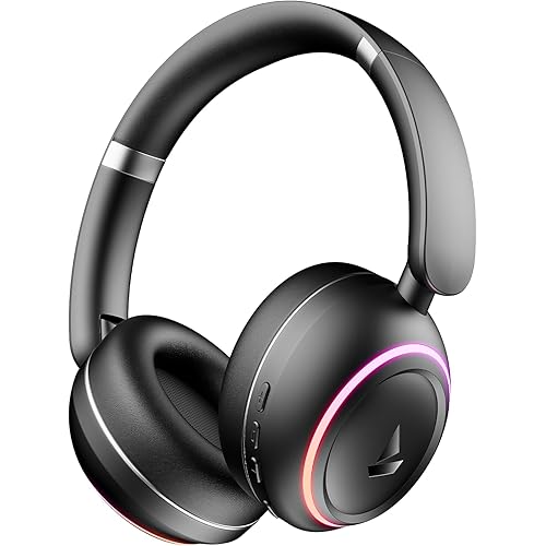 boAt Rockerz 480 w/RGB LEDs, 6 Light Modes, 40mm Drivers, Beast Mode, 60hrs Playback, ENx Tech, BT v5.3, Adaptive Fit & Easy Access Controls, Bluetooth Headphones(Black Sabre)
