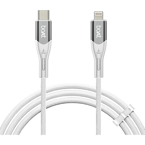 boAt Type C to Lighting Cable for 27W Fast Charging | 480 Mbps Data Transfer | 1.2 m (3.9 ft) Perfect Cable Length | Premium Nylon Braiding | Durable & Tangle-Free | With Silicon Tie (Arctic White)