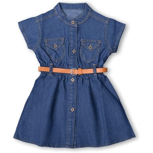 415232 reviews for Bold N Elegant Girl’s Short Sleeve Front Open Stylish Cute Cotton Denim Dress Frock Tunic with PU Leather Belt and Pockets for Infant Toddler Baby Girls