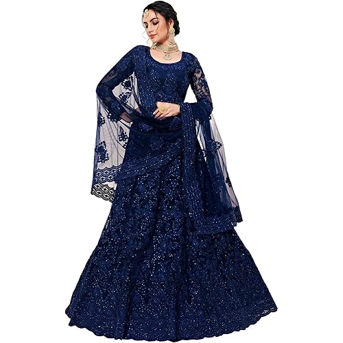 593 reviews for Bollyclues Women’s Net Embroidered Semi-Stitched Lehenga Choli