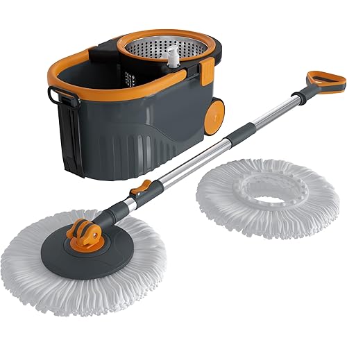 425828 reviews for Bonkaso Spin Mop with Stainless Steel Wringer & Big Wheels | 360° Rotating Mop, Adjustable Handle | Easy Floor Cleaning Bucket Set with 2 Microfiber Refills – Grey & Orange (46 x 26.5 x 23 cm)
