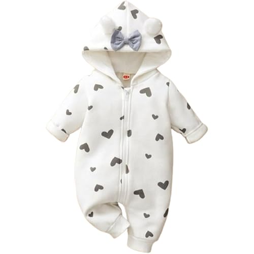 BRANDONN Kids Baby Cotton Fleece Jumpsuit Romper Onesie Sleep Suit Hooded Semi Winter Zipper (White & Grey, 0-3 Months)