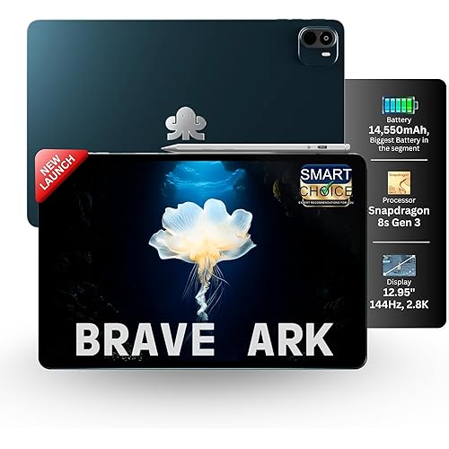 Brave Ark (SmartChoice) Android Tablet with Pen| 12.95″(32cm) 2.8K 144Hz Display| Snapdragon 8s Gen 3| AI-Enabled|12GB RAM, 256GB ROM| Segment’s Biggest 14550mAh Battery| 8 Speakers|WiFi|Galactic Blue