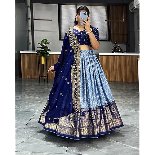BRYN ENTERPRISE Woman Soft Dola Silk Bandhani Foil Print Lehenga Choli Set (BLUE1)