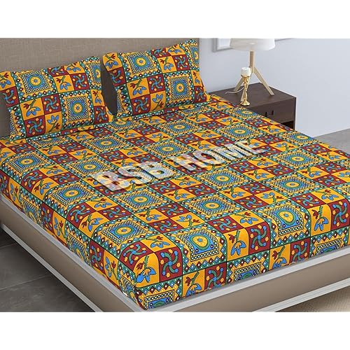 BSB HOME Pure Microfiber Jaipuri Rajasthani Print Bedsheet for Double with 2 Pillow Covers 144tc Breathable Wrinklfree Color – Red & Blue