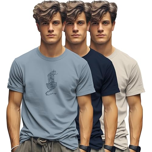 BULLMER Trendy Printed Cotton Blend Crew Neck/Round Neck Half Sleeve Tshirt for Men – Pack of 3