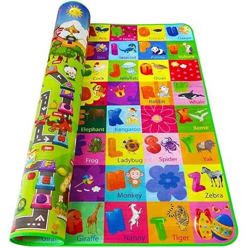 BUMTUM Alphabet Play Mat Double Sided Water Proof, Learning Floor Carpet Gym Mat for Crawling Baby/Infant/Toddler & Kids with Zip Bag(Large Size, Multicolour)1 Count