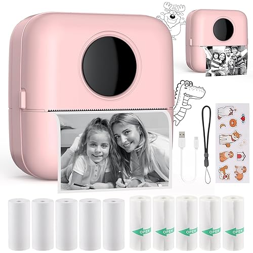BYWOKY Mini Bluetooth Thermal Printer with 11 Rolls | Portable Inkless Printing for Photos, Labels, & Stickers | AI Creative Tools | Ideal Gift (Pink)