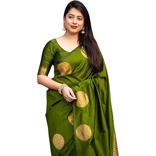 C J Enterprise Womens Pure Banarasi Soft Silk Saree Kanjivaram Style Sarees With Blouse Piece For Wedding (KeriGola-51)