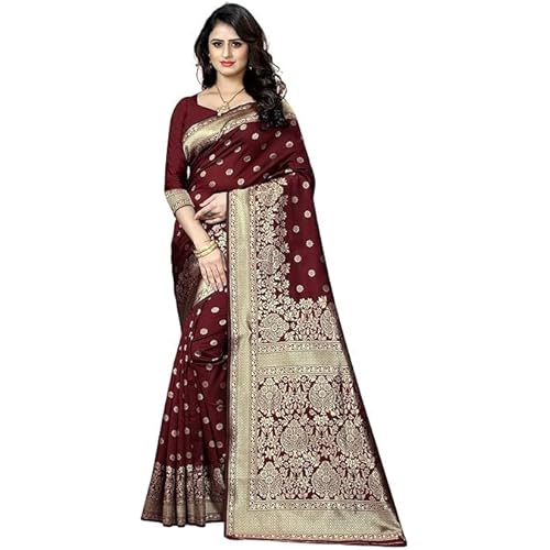 C J Enterprise Women’s Kanjivaram Silk Sari Pure Banarasi Soft Silk Sarees With Blouse Piece For Wedding (Pari100-51)