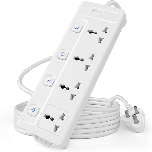 4652406 reviews for Cablet 250 Volts Extension Board 2500W 10A, 4 Universal Sockets, Individual Switches, 1.8M Heavy Duty Copper Wire, LED Indicator, Power Strip for Home and Office Use