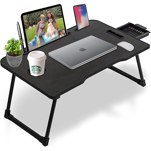 571 reviews for Callas Multi-Purpose Laptop Table with | Cup Holder | Drawer | Mac Holder | Study Table/Bed Table/Breakfast Table/Foldable and Portable Wooden Table (CA-39-Black)