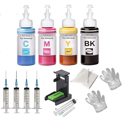 - How To Refill: Suck required ink into syringe from the ink bottle. Around 3 -5 ML is required to fill in each colour holes and 3 ML – 15 ML in black cartridge. It Depends on your Cartridge mode, slowly push the piston of the syringe into the hole. It should be very slow and careful. Do not overfill the sponge. Watch carefully while injecting