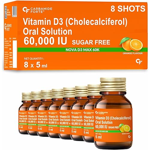 495340 reviews for Carbamide Forte Vitamin D3 60000iu Shots | Vitamin D3 60000 iu Sugar Free Oral Solution| Vitamin D 3 60K Supplement for Men & Women β 5ml Orange Flavour (Pack of 8)
