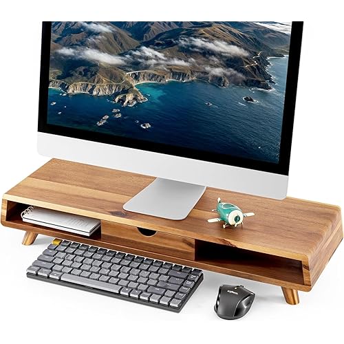 - Natural Material: Crafted from premium Mango wood, this monitor stand is both durable and visually appealing. Mango wood is known for its rich color and fine pattern, making it a stylish addition to any workspace. The natural wood finish ensures longevity and adds a touch of sophistication.