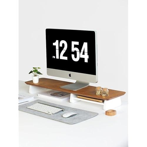 carpentray Store 90cm Long Wooden Monitor Stand with Storage Shelf Organizer for Desk, Tables, Office, Home, Studio, Study Table | Desktop Ergonomic Monitor Stand Riser (90cm Long)