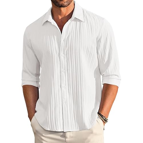 - 【Unique Design】Mens casual shirts feature long sleeve,spread collar, solid color,slight vertical ribbing,relaxed fit,simple and fashion