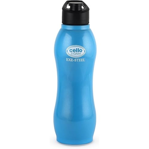 Cello Zigma Exe Single Walled Stainless Steel Flask, 1000ml, Blue | Leak Proof & BPA Free | Wide Mouth for Easy Sips | Flip Top Lid | Refrigerator Safe | Best for School, Yoga, College & Office