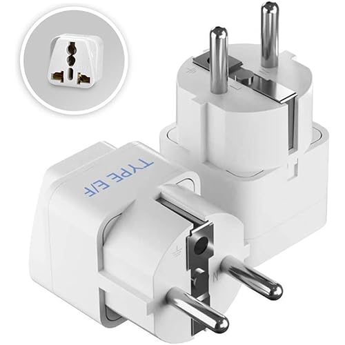 Ceptics European Plug Adapter, India to Europe Adapter (Schuko) – Type E/F Travel Adapter Europe – CE Certified – RoHS Compliant – White – 2 Pack – 5 Years Warranty