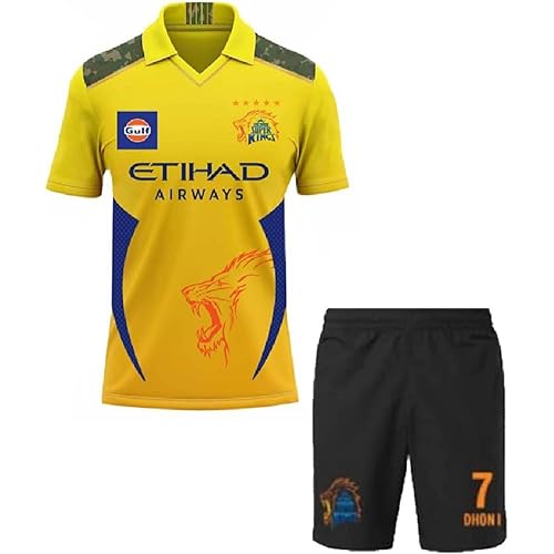 Chennai Dhoni 7 Full Sleeve Jersey T-Shirt with Printed Logo Track Pants 2024/2025 (Boys & Men)