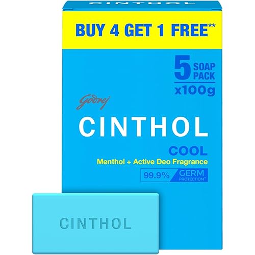 9589 reviews for Cinthol Cool Soap, 100g (Pack of 5) | with Icy-cool Menthol | Soaps For Bath | Grade 1 Soap | For All Skin Types