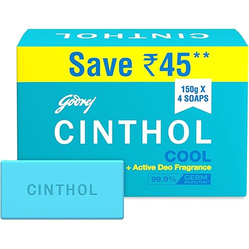 9760 reviews for Cinthol Cool Soap, 150g (Pack of 4) | with Icy-cool Menthol | Soaps For Bath | Grade 1 Soap | For All Skin Types