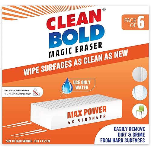 116 reviews for CleanBold® Max Power Magic Eraser, Extra Durable Melamine Sponge, 4X Stronger, Pack of 6 Chemical Free Multipurpose Non-Scratch Scrub Sponge for Office Home Bathroom Kitchen Tiles Floor Deep Cleaning, Melamine