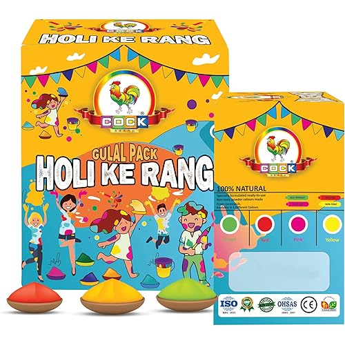 192 reviews for Cock Brand Natural Holi Colours – Holi Ke Rang Gulal – Pack of 4-75g (300g) – Skin Friendly – Organic Holi Colours – Eco Friendly – Easy to Washable – Natural and Organic Gulal Powder