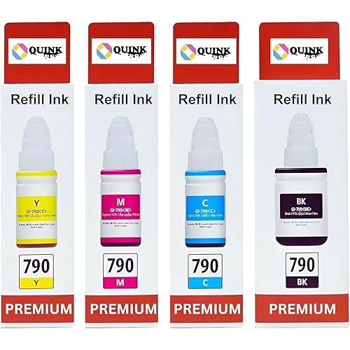 Compatible Ink for Canon Gi 790 Pixma Ink Suitable for Canong1000 / G1010 / G1100 / G2000 / G2002 / G2010 / G2012 / G2100 / G3000 / G3010 / G3012 / G3100 / G4000 / G4013 (4 Color Set)