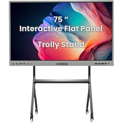 Cornea 75 Inches 4K UHD Touch Screen LED TV UltraTouch Display Interactive Flat Panel with Monitor(3840 x 2160 Pixels)Android13 With Display Stand Heavy Duty Adjustment Floor TV Trolley with Brackets.